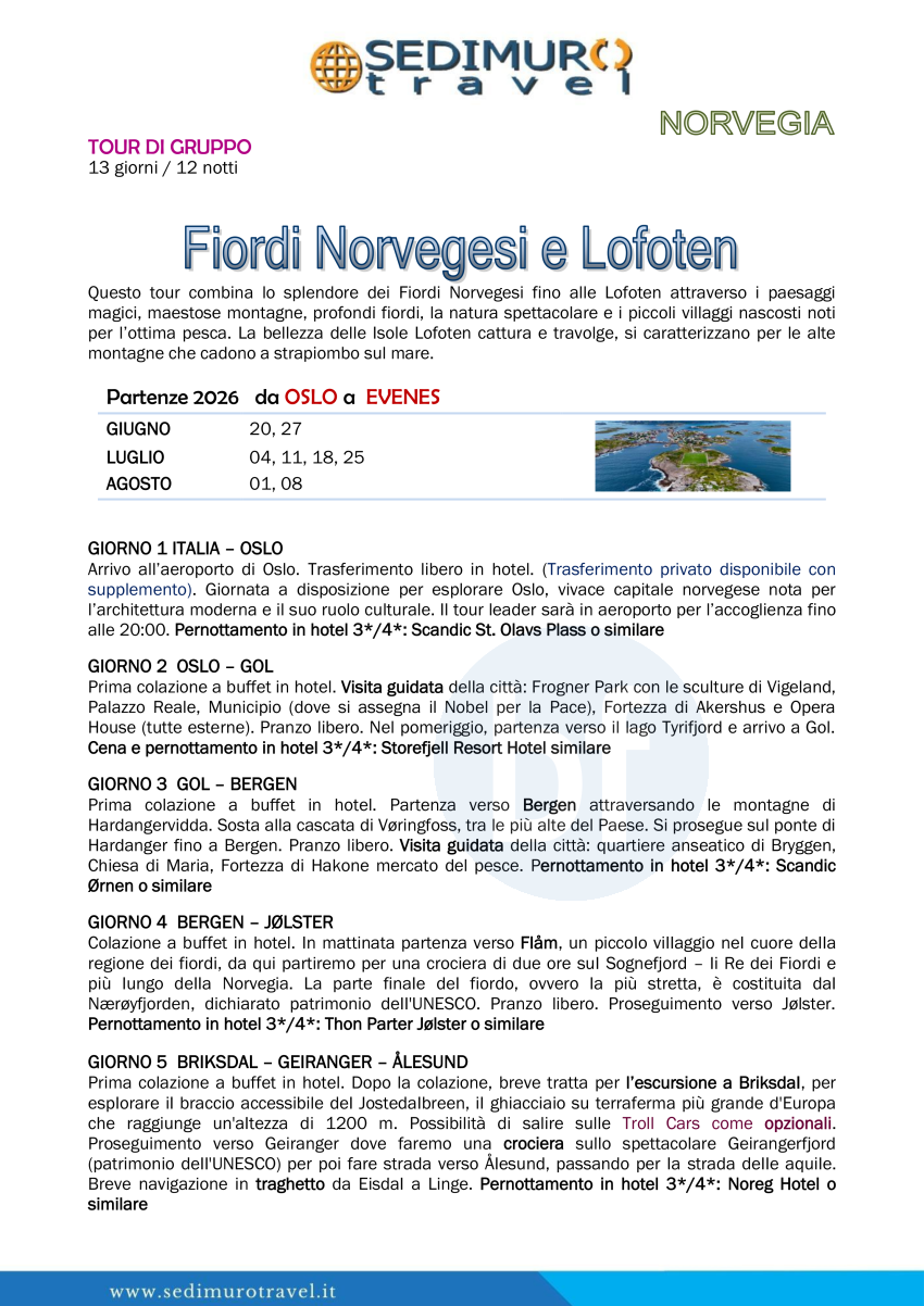 Fiordi Norvegesi e Lofoten da Oslo a Evenes 13 giorni
